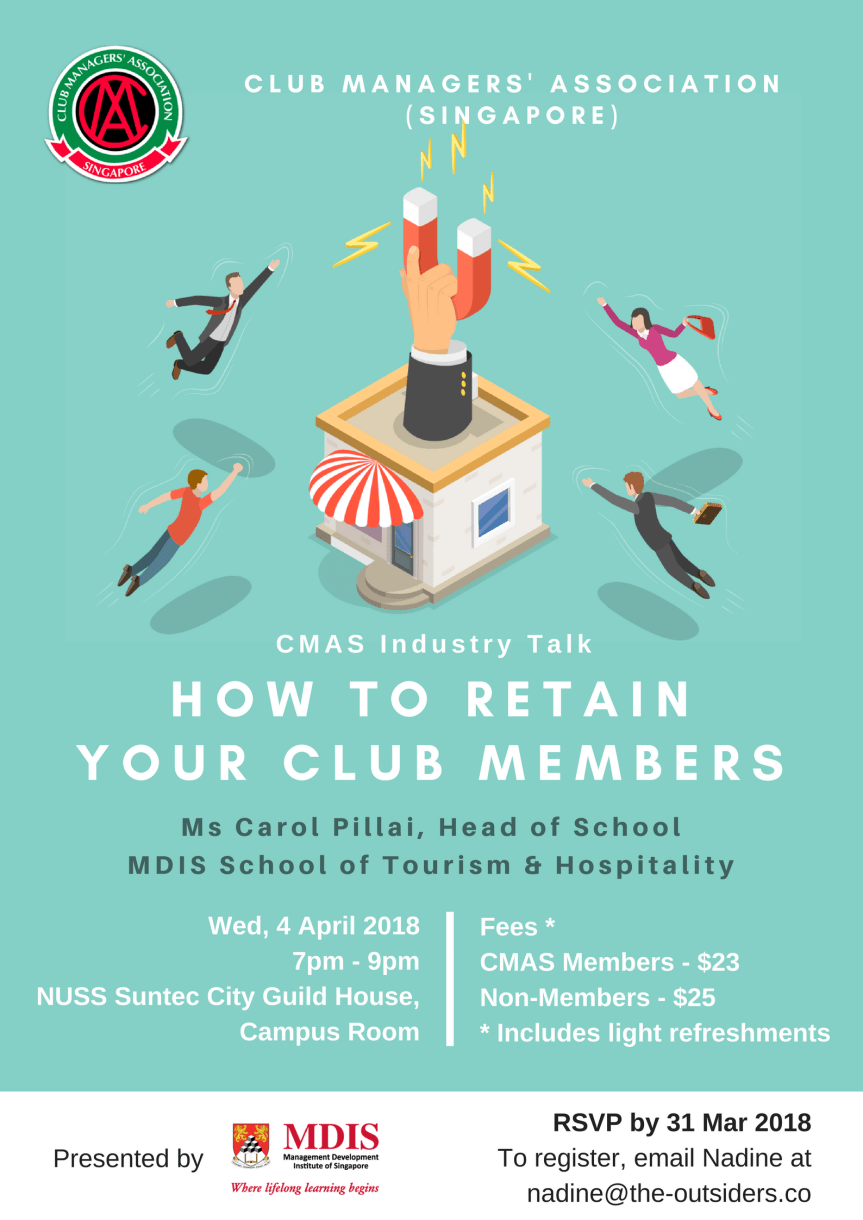 With new age clubs challenging the appeal of traditional golf and recreation clubs, what can club administrators do to keep existing members interested? Carol Pillai, Head of the MDIS School of Tourism and Hospitality shares her expertise on the topic at our upcoming CMAS Industry Talk: How to Retain Your Club Members.