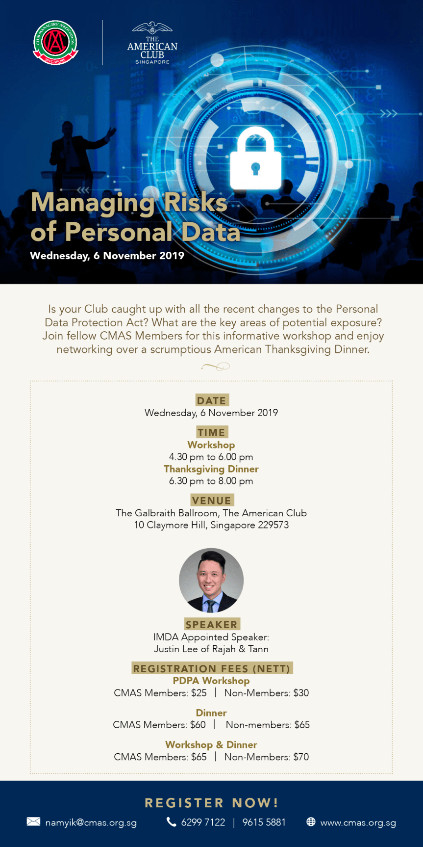Join us to find out more about the Personal Data Protection Act (PDPA) and the updates such as the NRIC Advisory Guidelines, key learning points from enforcement cases, and how the Data Protection Trustmark can help organisations demonstrate accountability towards data management and protection.