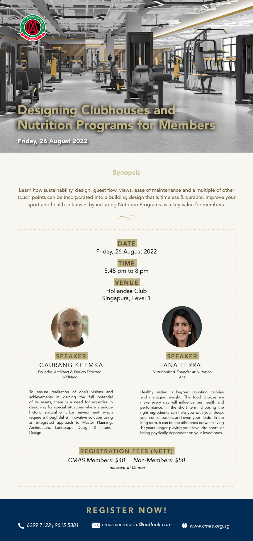 CMAS Dinner Talk 26 Aug – Designing Clubhouses and Nutrition Programs for Members
